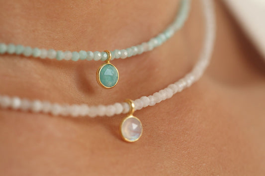 Kaklo papuošalas su Mėnulio akmeniu