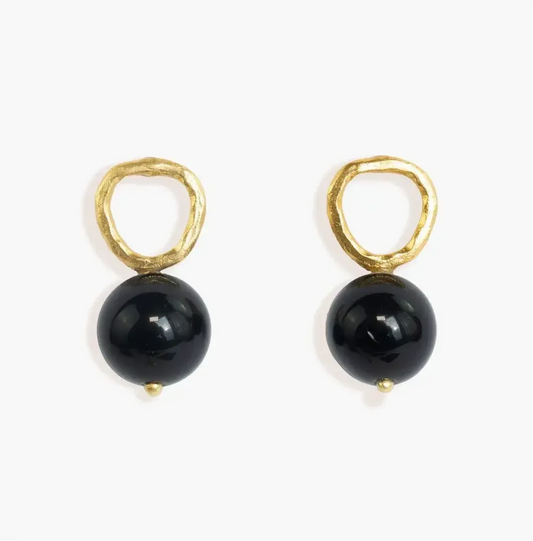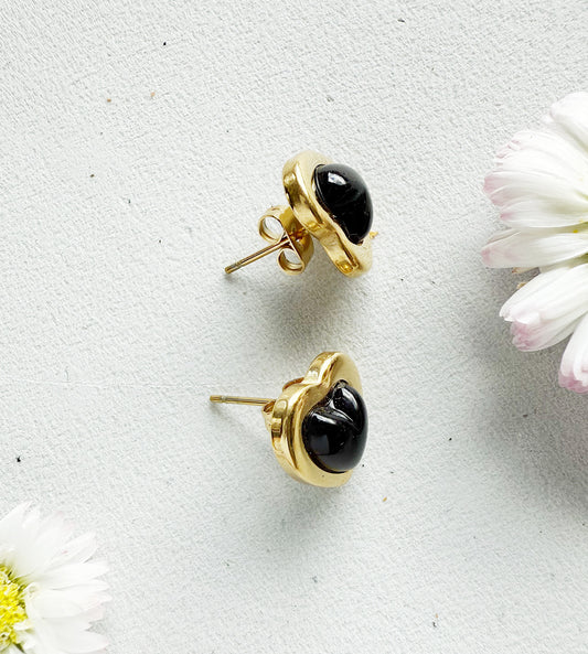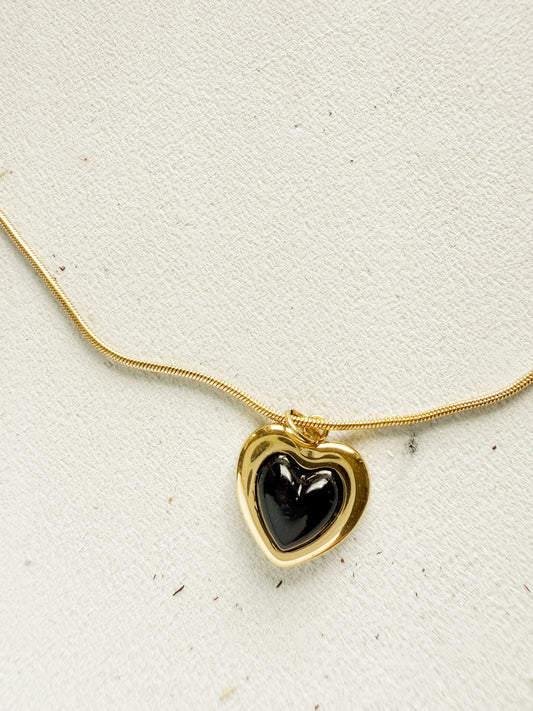 Onikso kaklo papuošalo ir auskarų rinkinys “Širdis”
