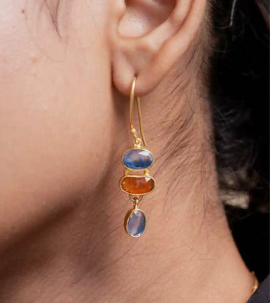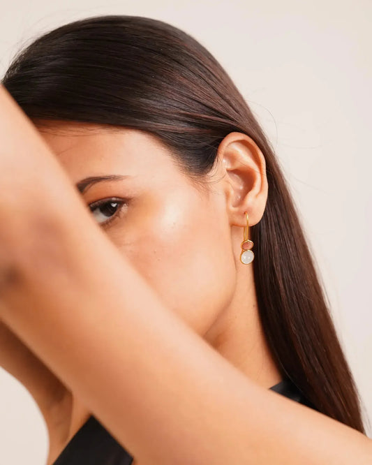 Auskarai su granatais ir Mėnulio akmens kristalais