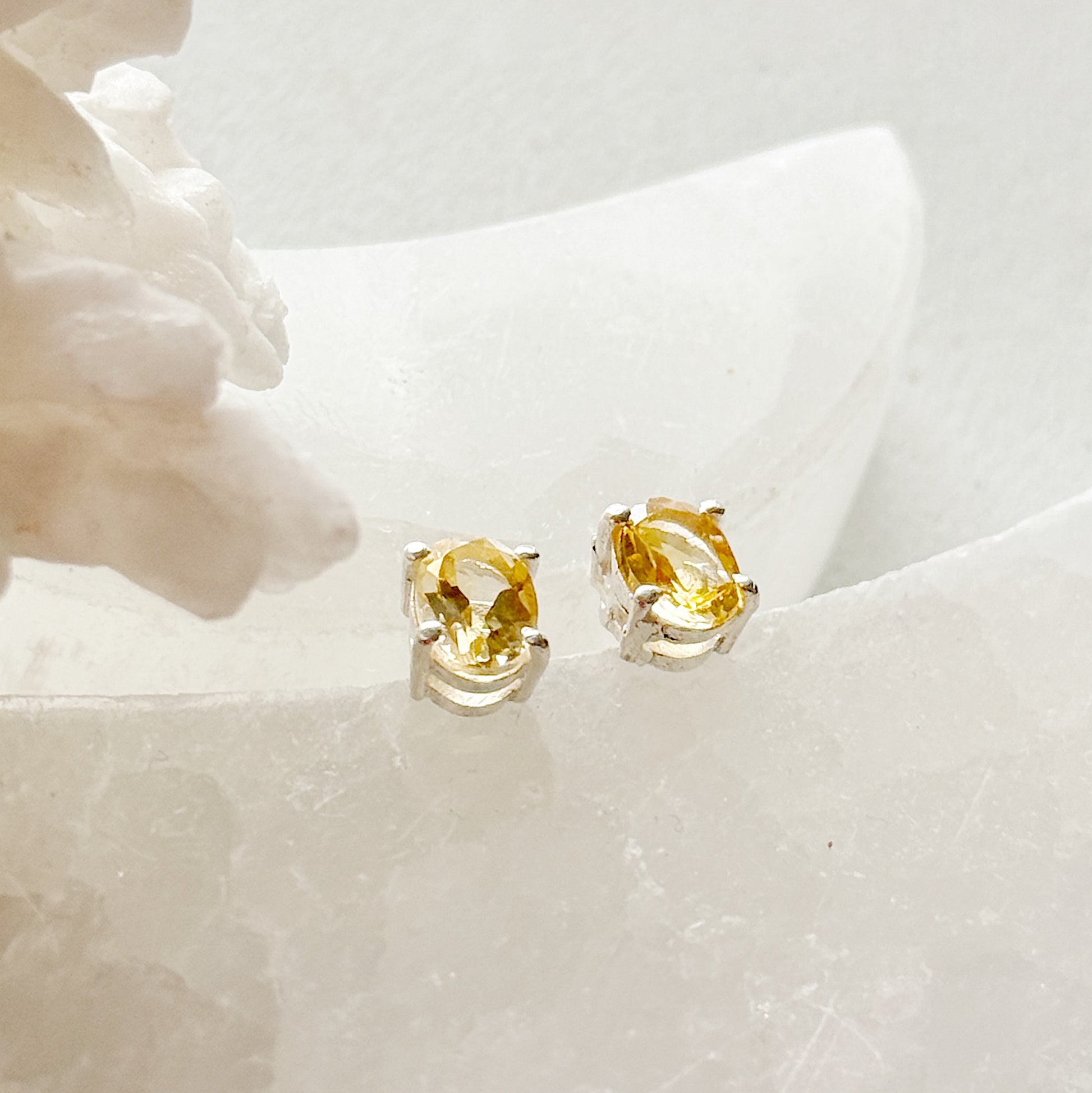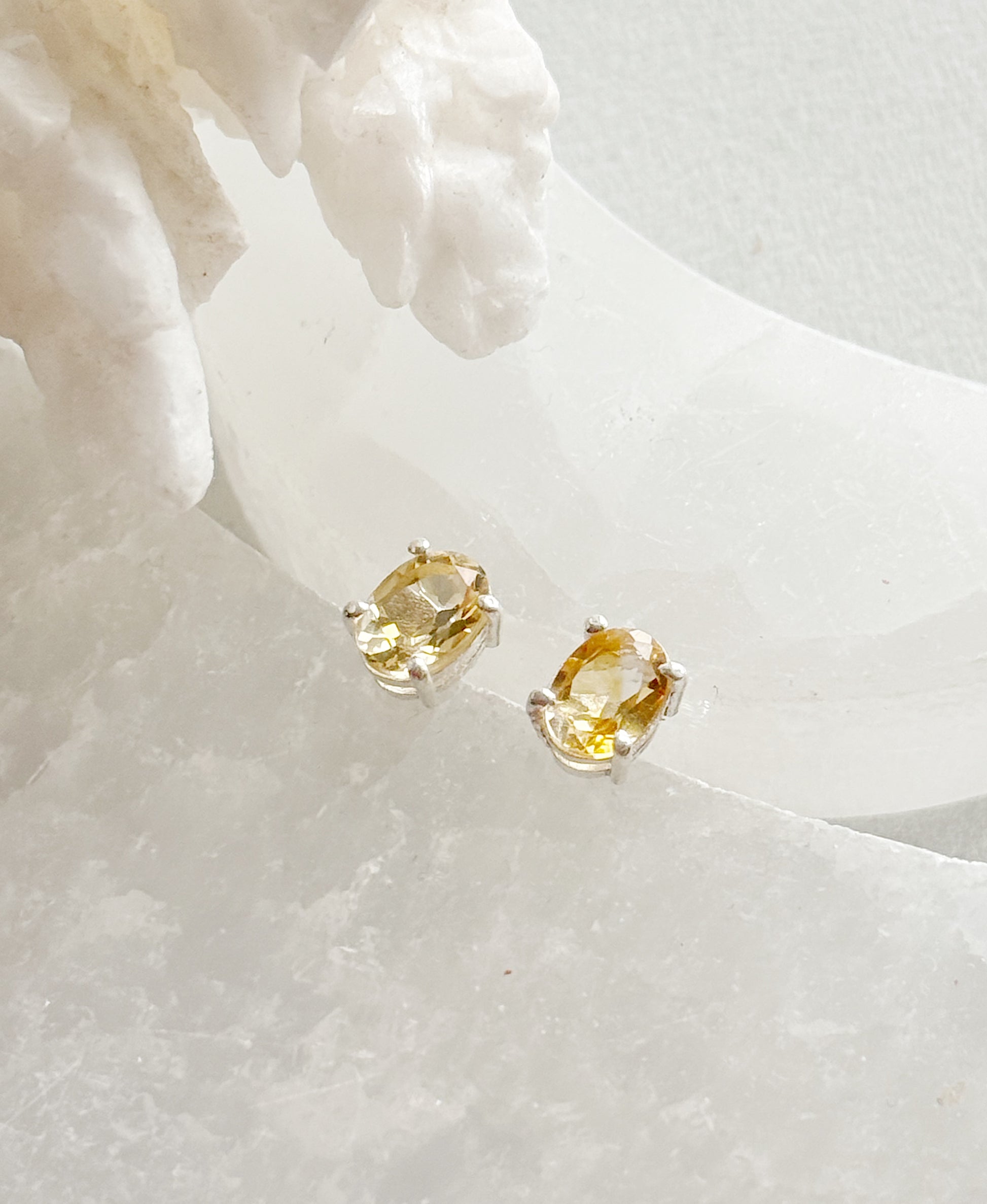 Subtilūs sidabro auskarai puošti Citrino kristalais.