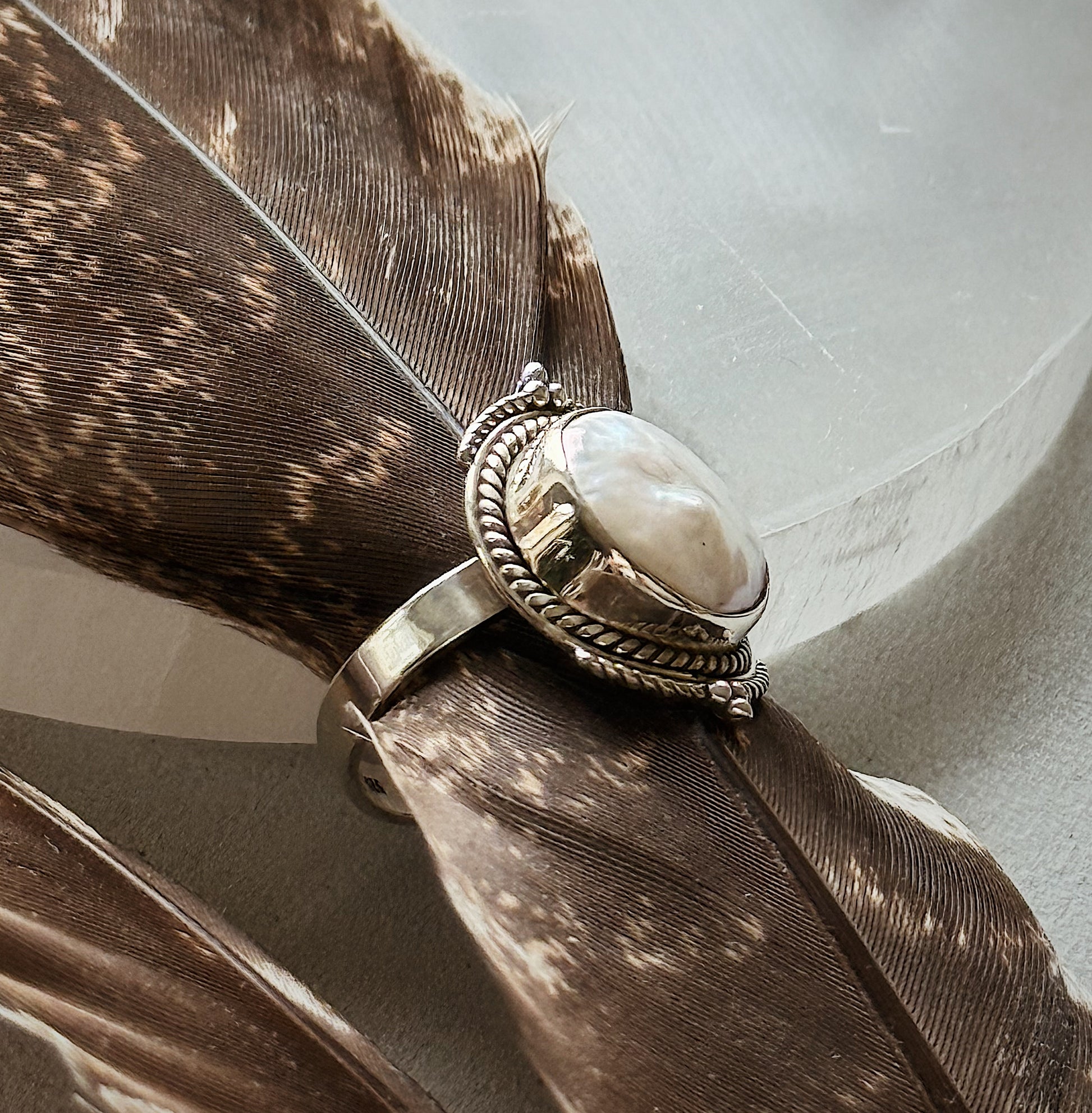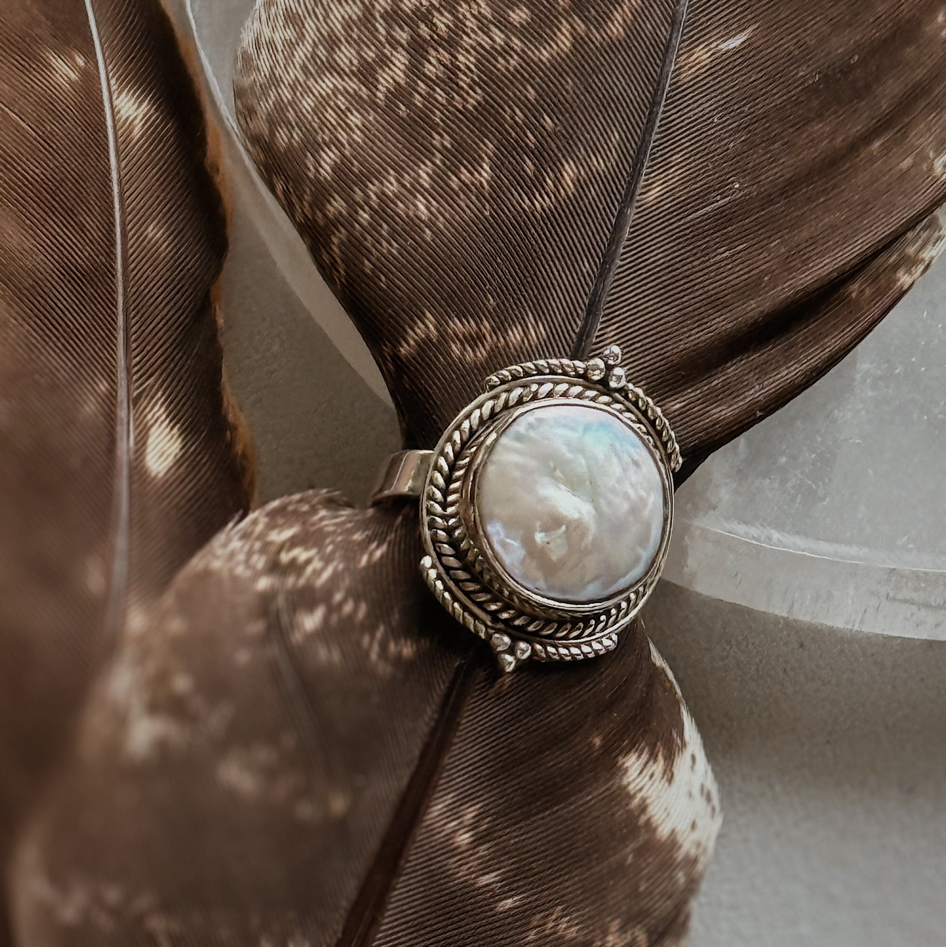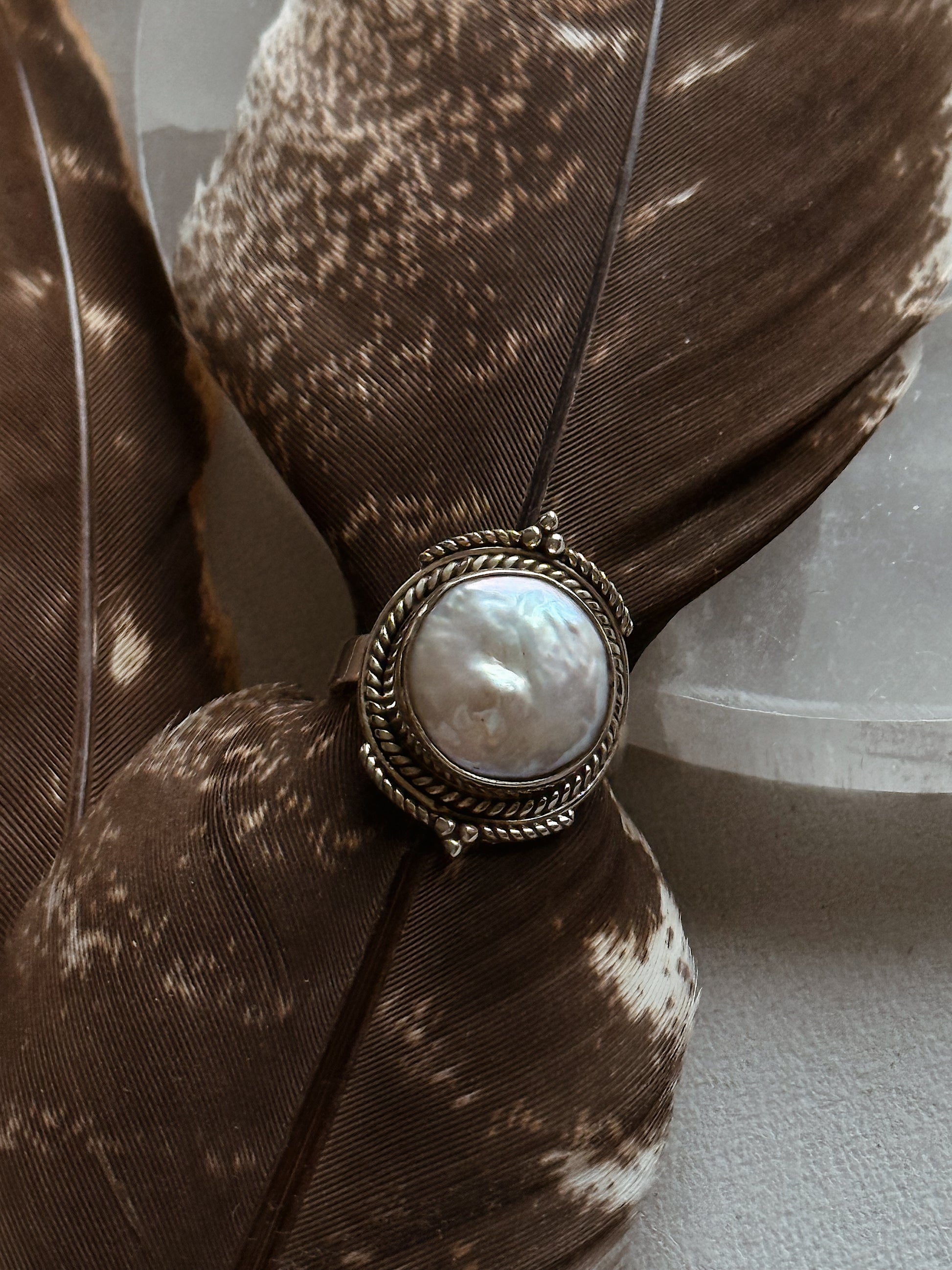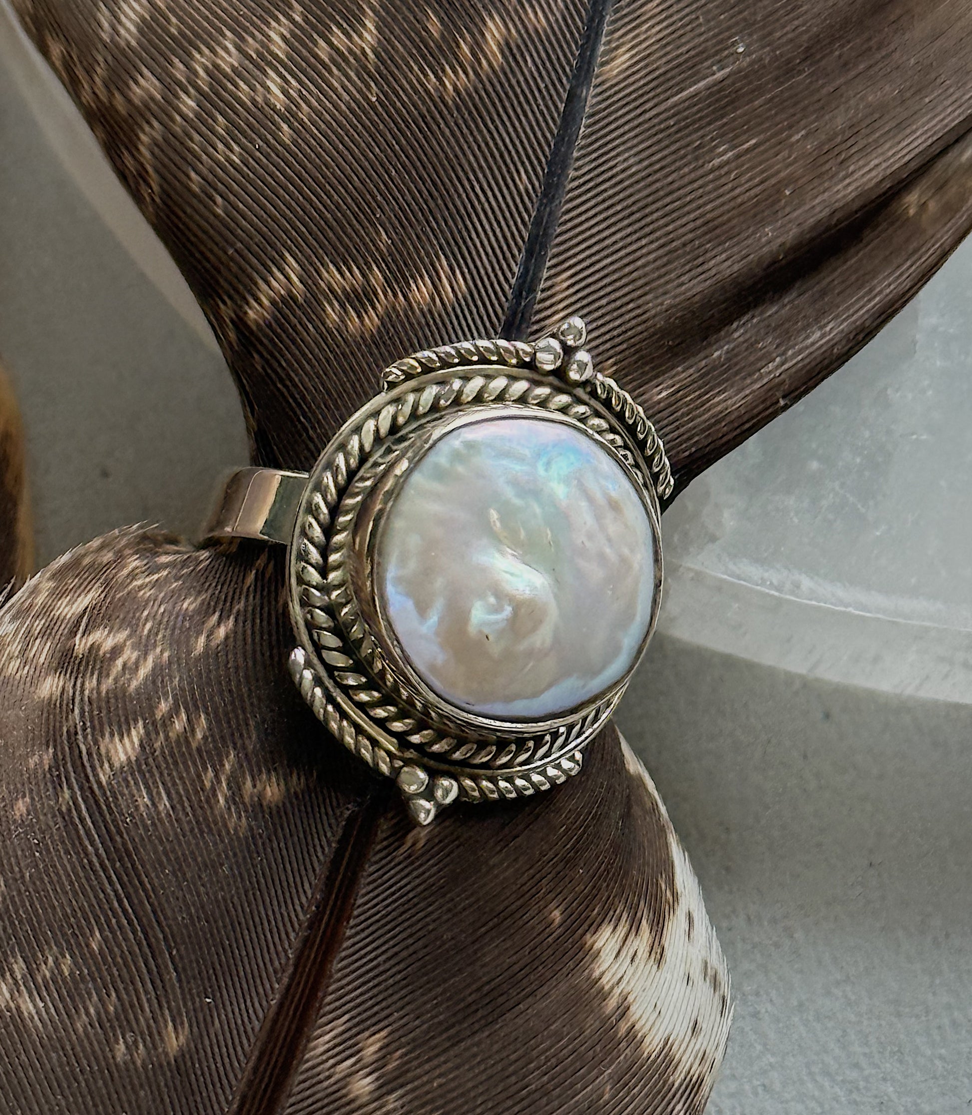 Sidabrinis žiedas su barokiniu perlu / 18 dydis