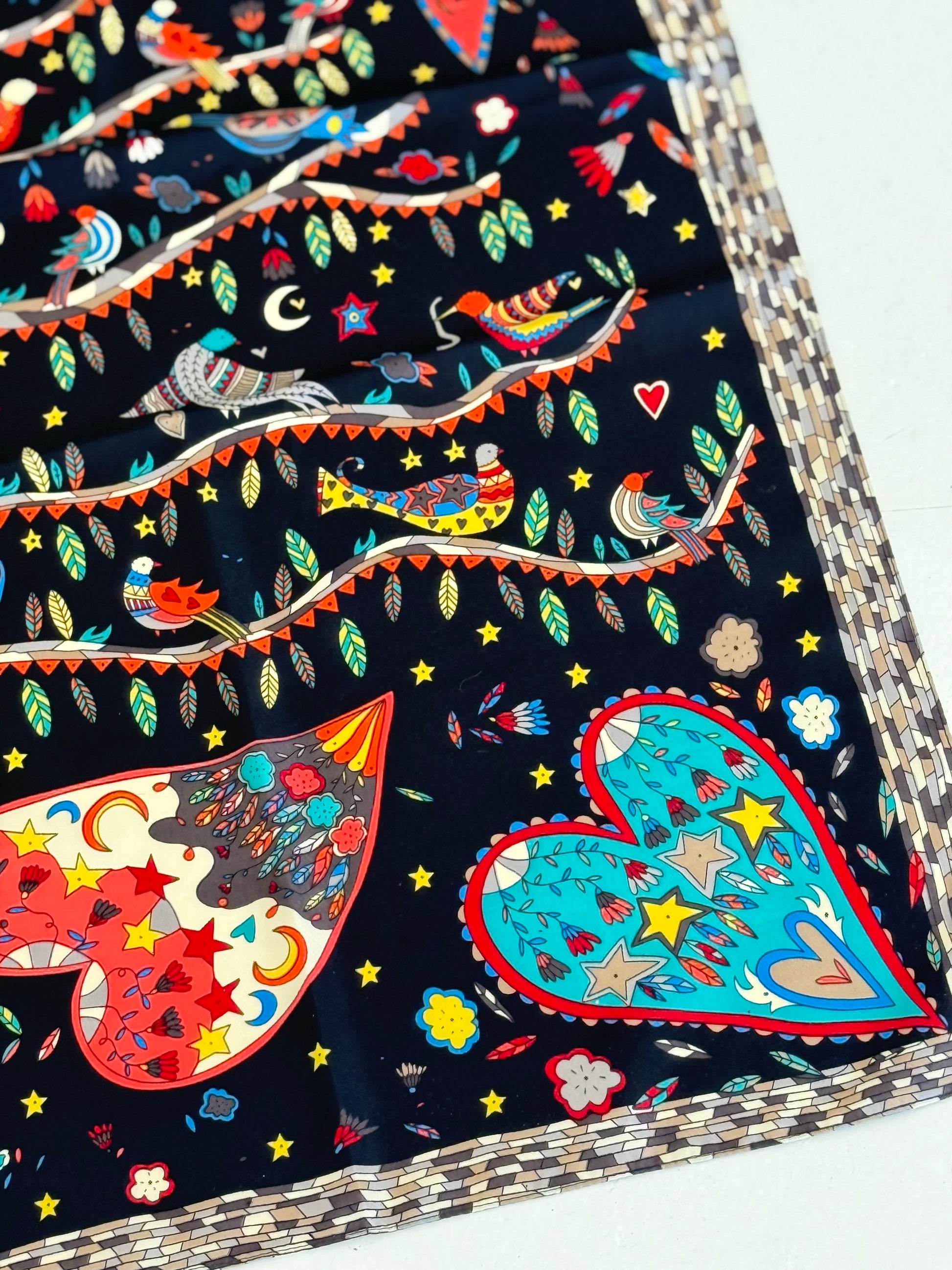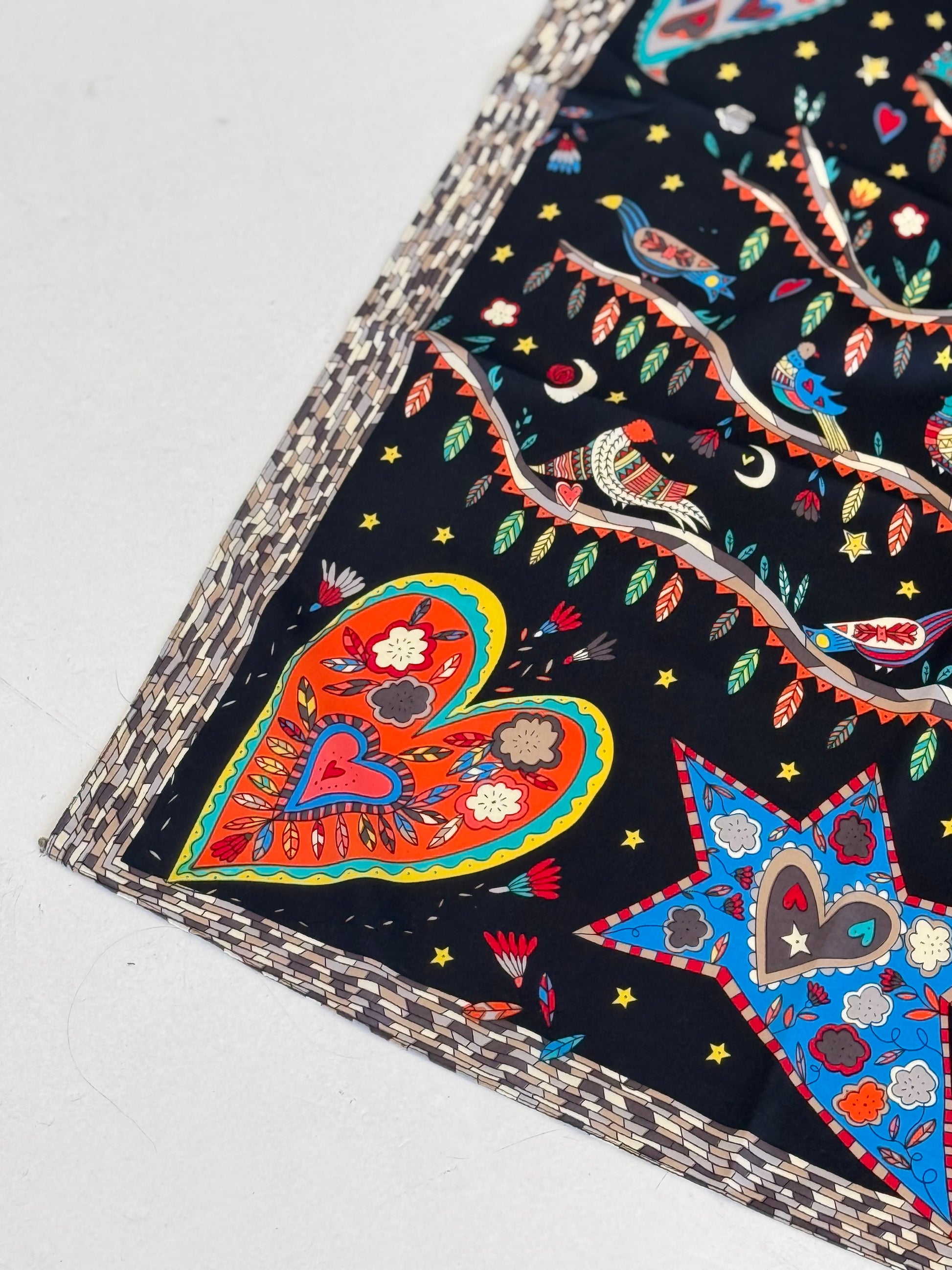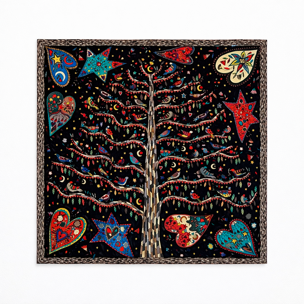 Ši skarelė, tarsi visatos žemėlapis, kuriame susipina širdies simboliai, paukščiai žvaigždės ir visa apjungiantis gyvybės medis.